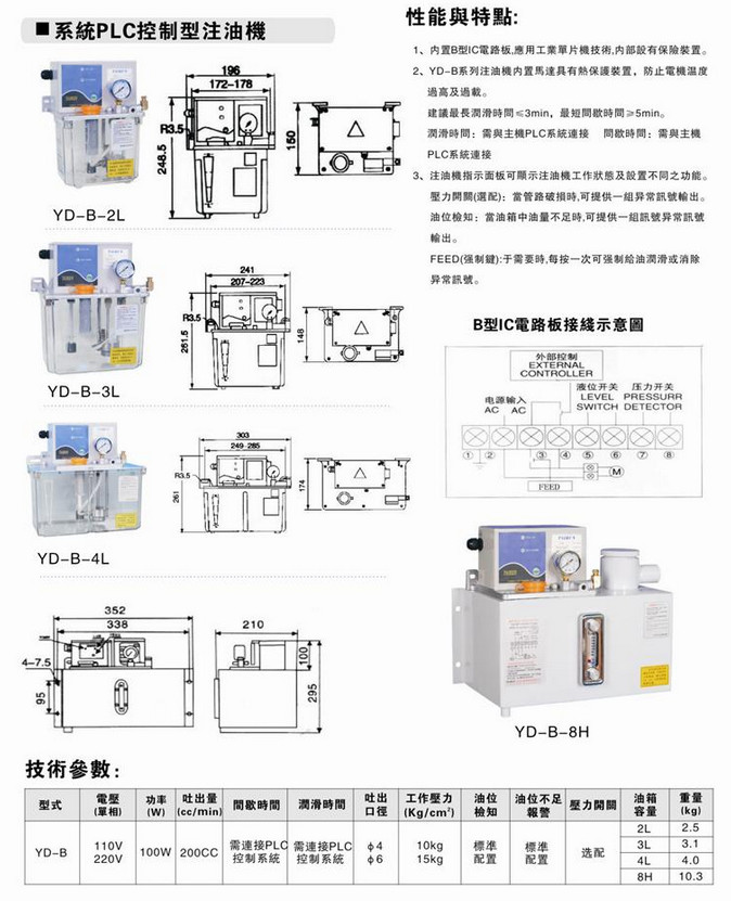 YD-B-2L,YD-B-3L,YD-B-4L,YD-B-8H,系統(tǒng)PLC控制型注油機(jī)
