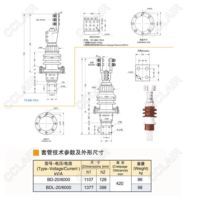 接線板、瓷件、導(dǎo)電桿和籌鋁合金法蘭組成。