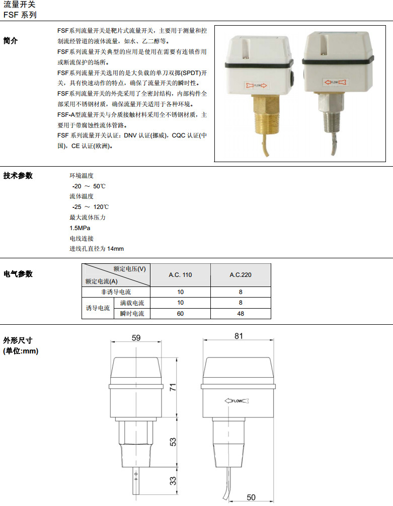 FSF50P-2,FSF50P-3,FSF50P-1,FSF50P-2A,FSF50P-3A,FSF50P-1A,流量開關(guān)