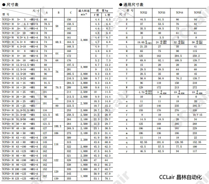 無(wú)錫昌林TCP44-L31.5-50-MR1,TCP44-L40-40-MR1,
