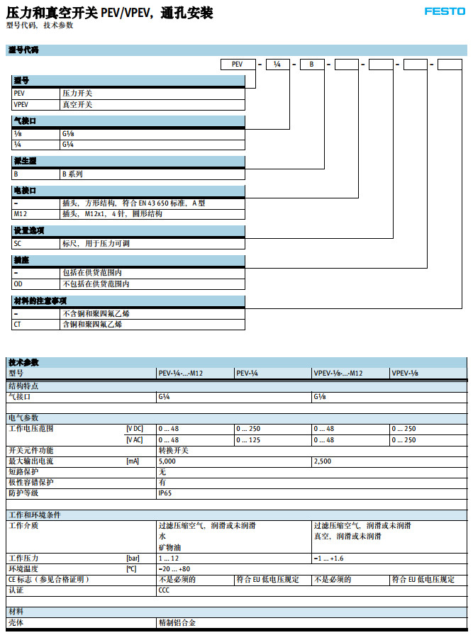 PEV-1/8-B-M12-SC,VPEV-1/4-B-M12-SC,VPEV-1/8-B-M12-SC,festo壓力開關(guān)