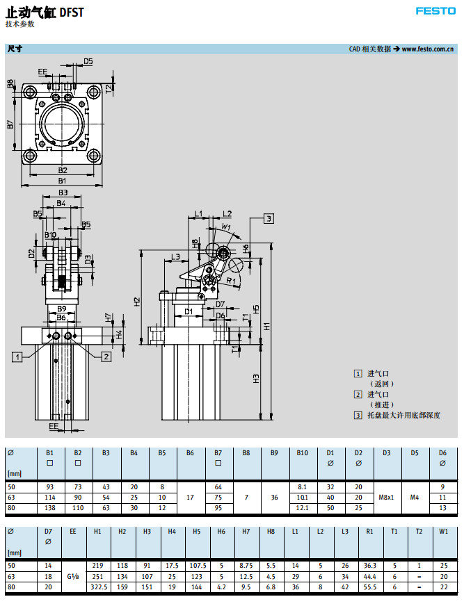 詳細(xì)信息 DFST-50-30-DL,DFST-63-30-DL,DFST-80-40-DL,festo止動(dòng)氣缸