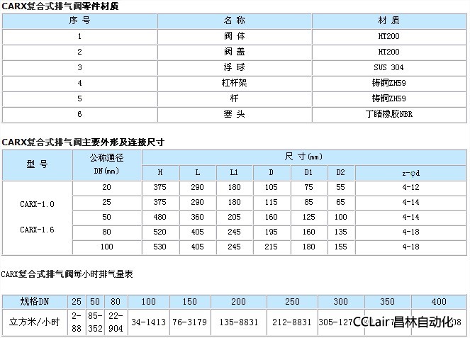 CARX復(fù)合式排氣閥結(jié)構(gòu)與用途: