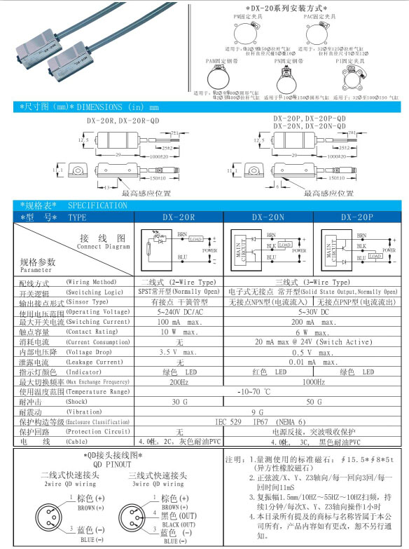 詳細(xì)信息 DX-20R,DX-20N,DX-20P,磁性開(kāi)關(guān)