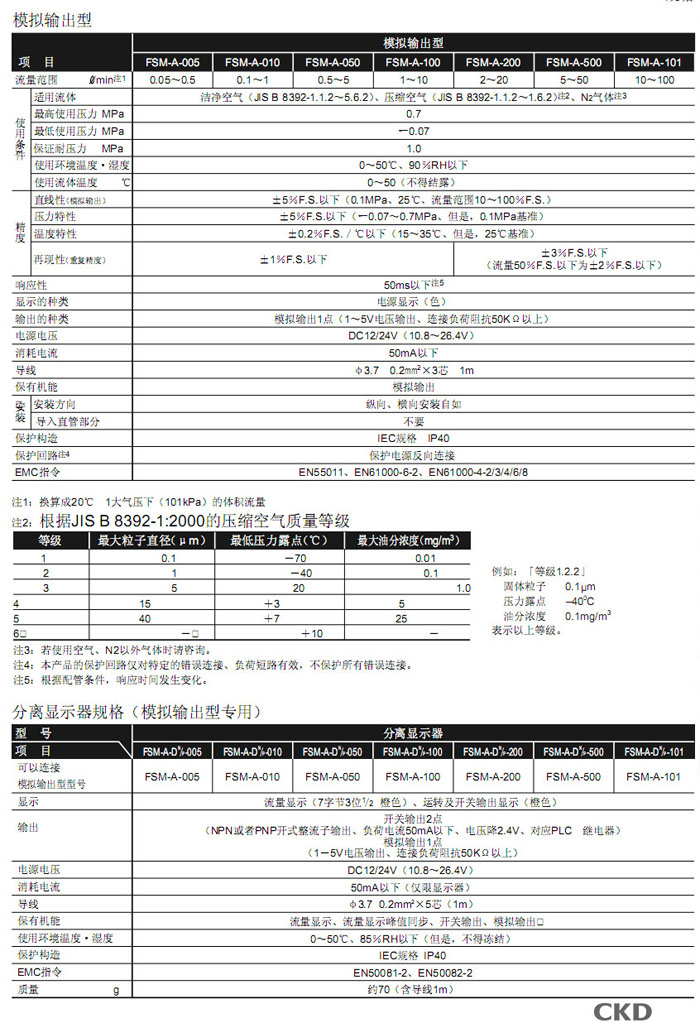 FSM-N-005,FSM-P-005,FSM-A-005,FSM-N-010,FSM-P-010,FSM-A-010,FSM-N-050,CKD流量傳感器