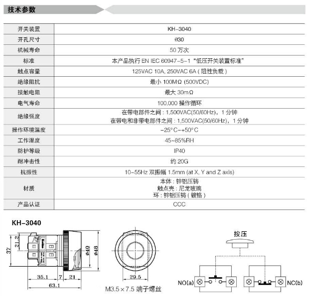詳細(xì)信息 KH-3040,Koino Φ30重負(fù)荷開(kāi)關(guān)