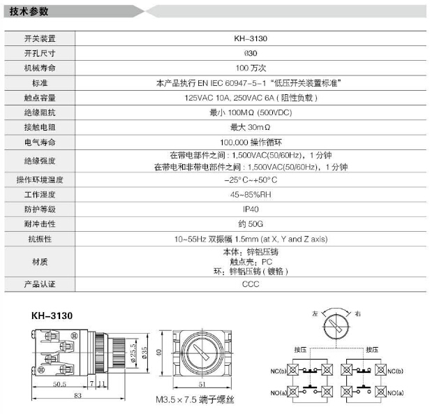 詳細(xì)信息 KH-3130,Koino Φ30重負(fù)荷開(kāi)關(guān)