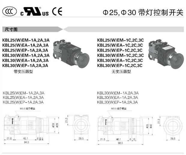KBL30M,KBL30MP,KBL30AT,KBL30AP,KBL30ER,KBL30EM,KBL30EA,KBL30EP,KBL30M-1A,KoinoΦ30帶燈控制開(kāi)關(guān) |