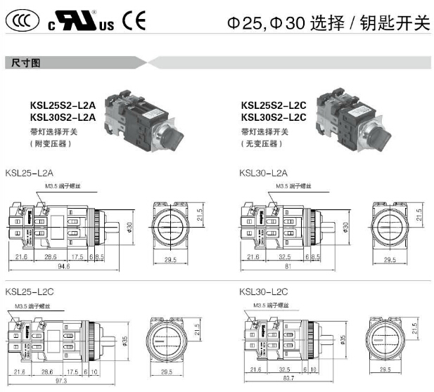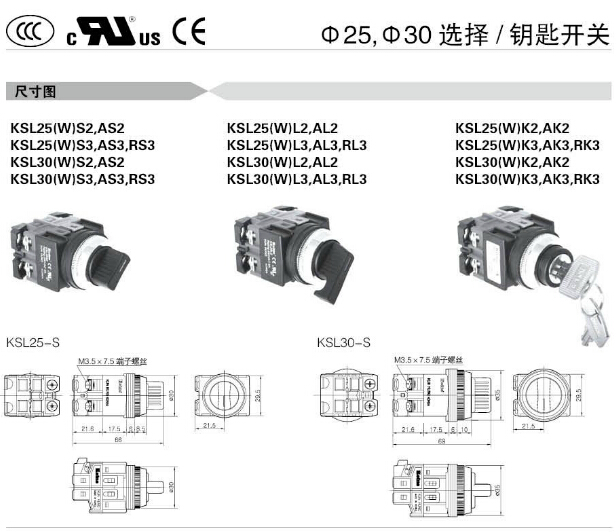 詳細信息 KSL25S2,KSL25AS2,KSL25RS3,KSL30S2,KSL30AS2,KSL30RS3,KSL25WS2,KSL30WAS2,KSL25S2-L2A,Koino選擇開關