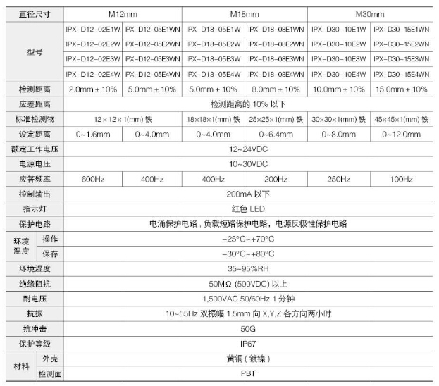 IPX-D12-02E1W,IPX-D18-05E1W,IPX-D30-15E1WN,IPX-2D12-02A1W,IPX-2D18-08A1WN,Koino圓柱形接近開關(guān) |