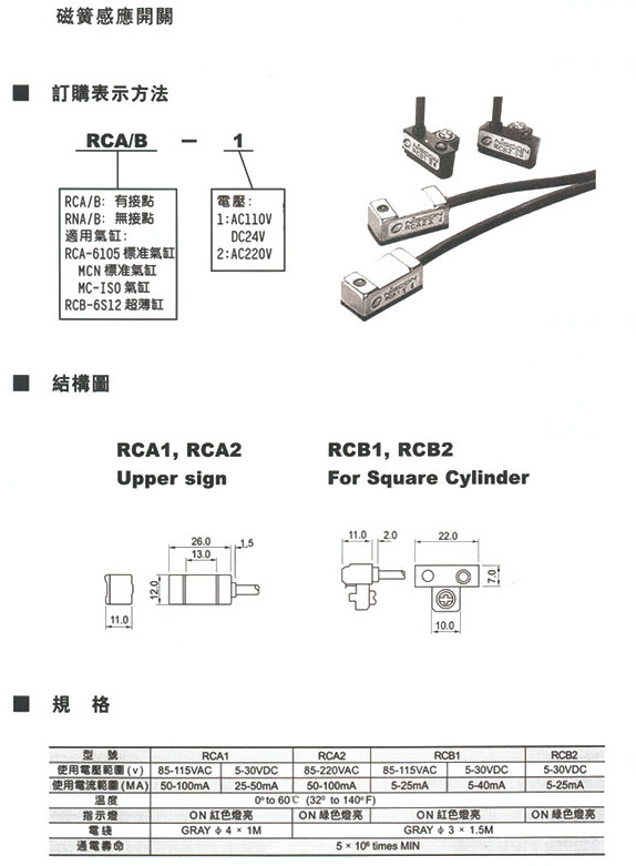 詳細(xì)信息 RCA-1,RCA-2,RCB-1,RCB-2,RNA-1,RNA-2,RNB-1,RNB-2,磁簧感應(yīng)開關(guān)