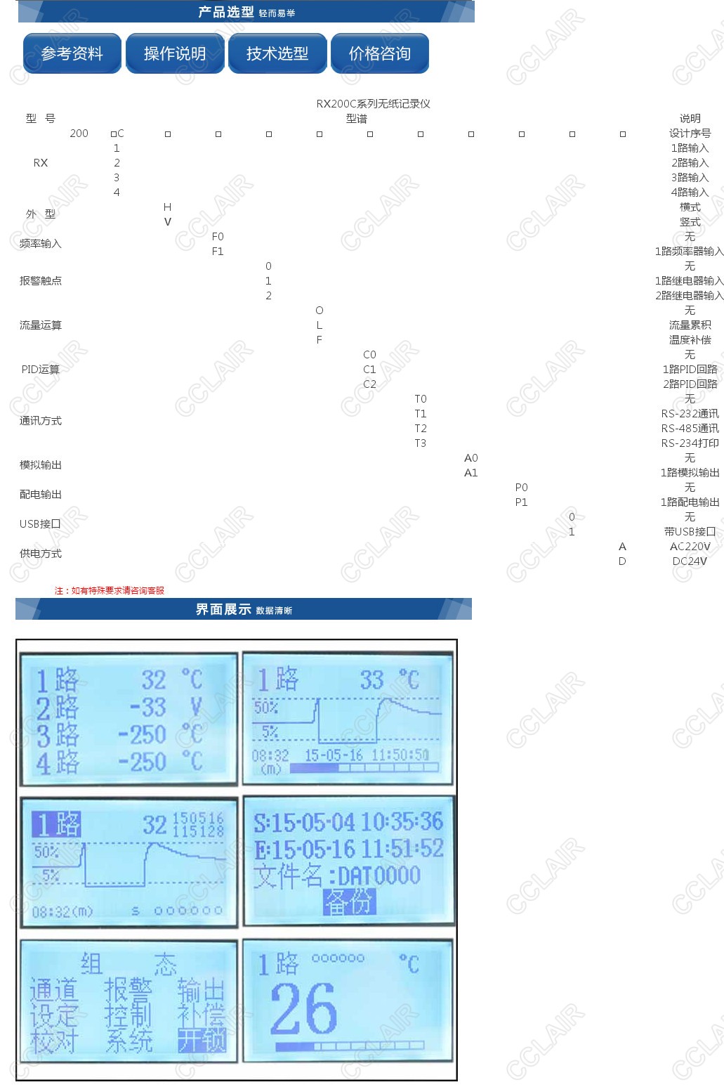 RX201C-H,RX201C-V,RX202C-H,RX202C-V,RX203C-H,RX203C-V,RX204C-H,RX204C-V,RX200C無紙記錄儀