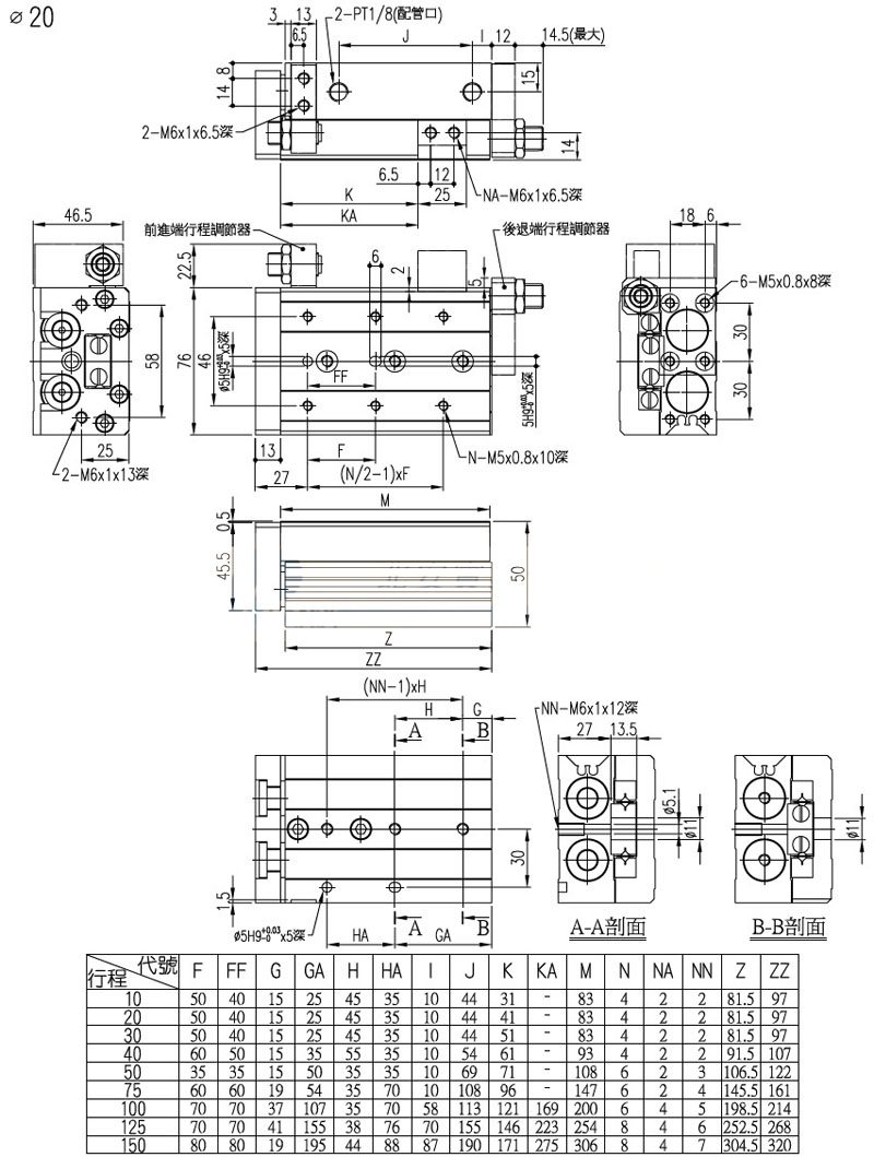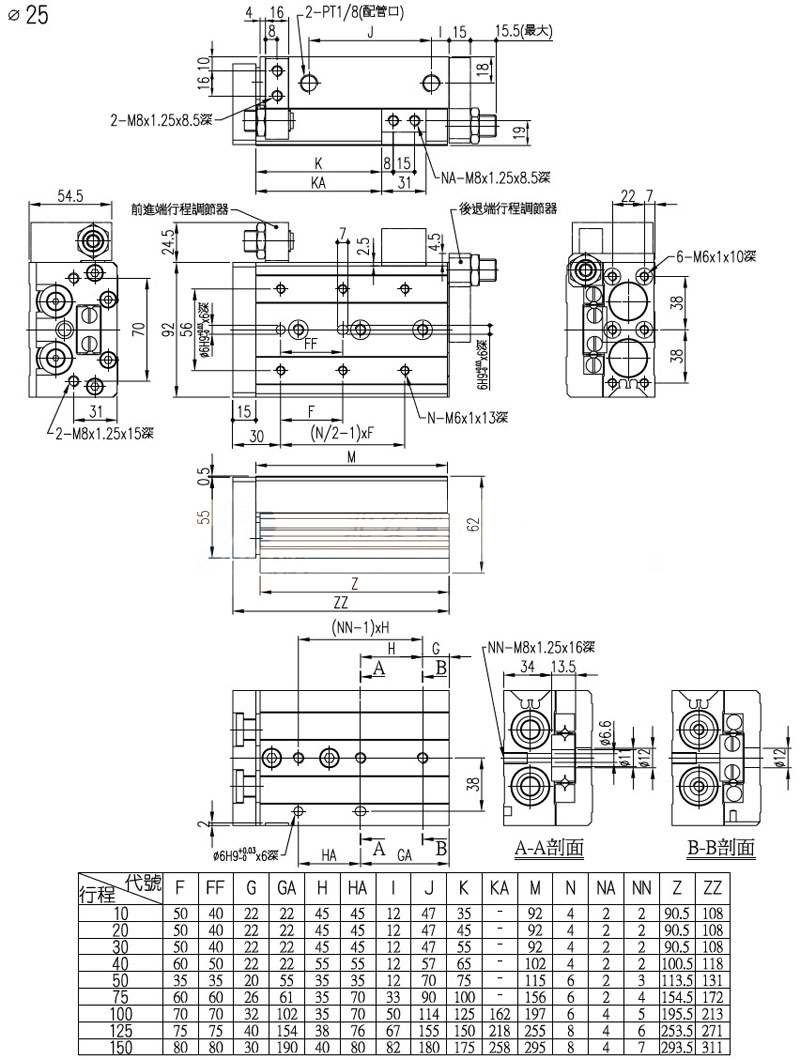 PXS-6,PXS-8,PXS-12,PXS-16,PXS-20,PXS-25,panix滑軌氣壓缸