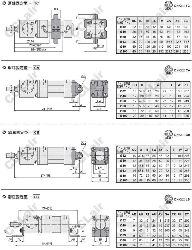 氣立可(chelic),DNK40*50,DNK50*75,DNK63*50,DNK100*400,DNK32X125,DNK75X300,鋁合金剎車(chē)氣缸