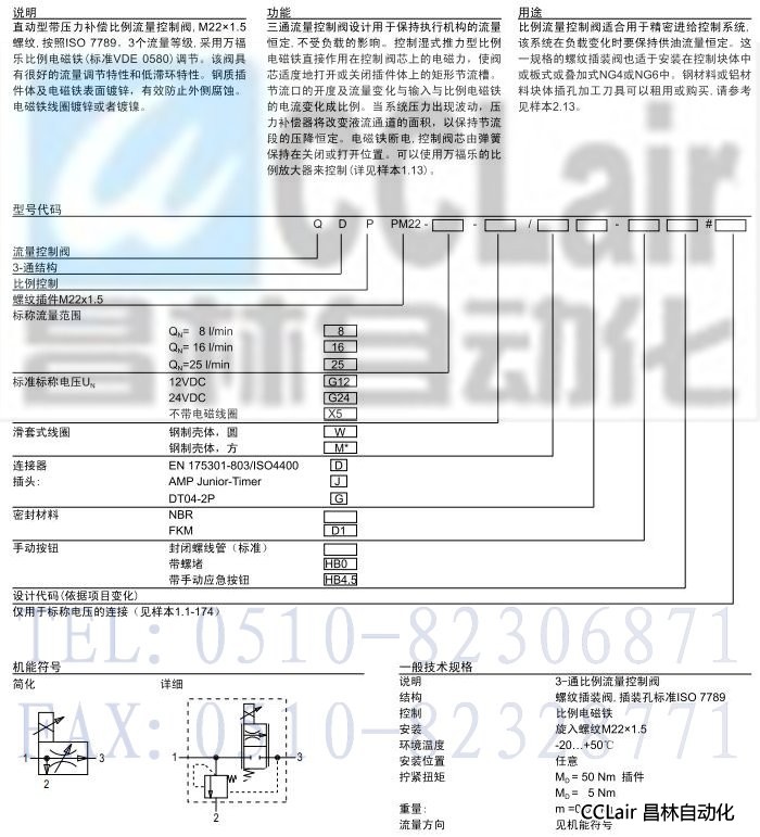 產(chǎn)品: 瀏覽次數(shù):1067QDPPM22,插裝式比例3-通流量控制閥(滑套式線圈)