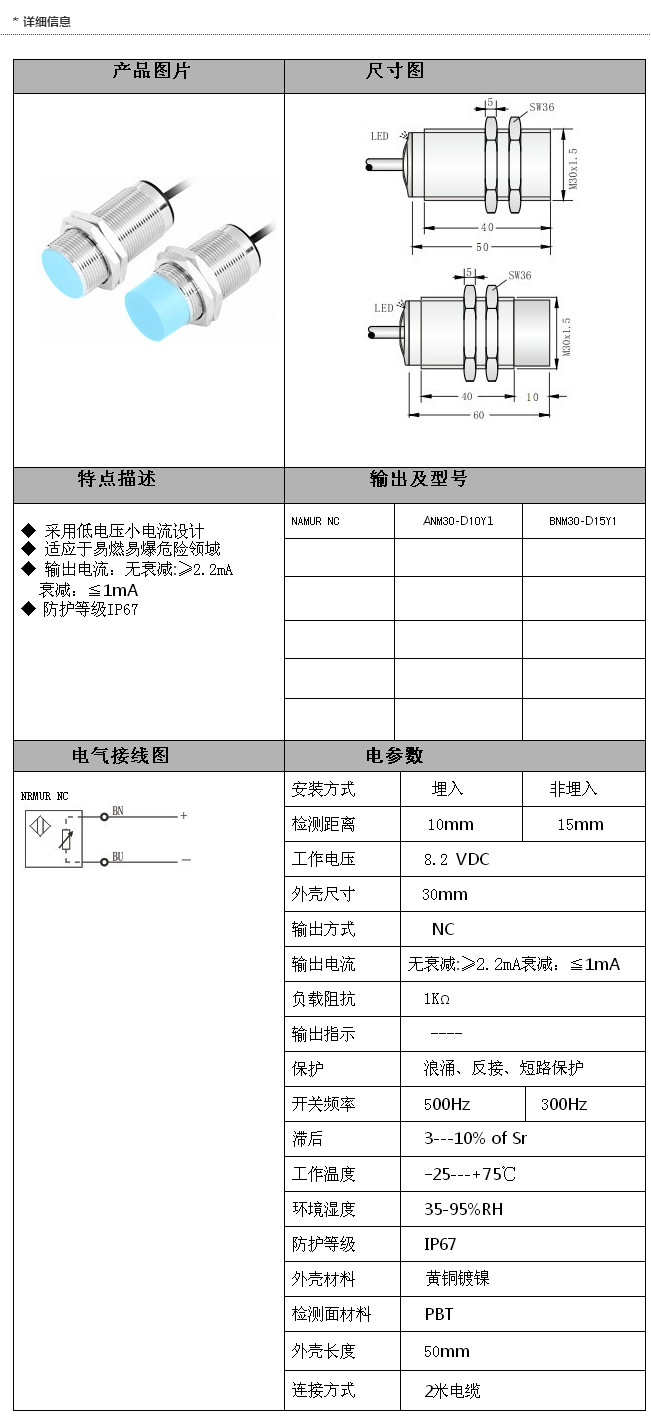 詳細信息 ANM30-D10Y1,BNM30-D15Y1,M30本安接近開關(guān)