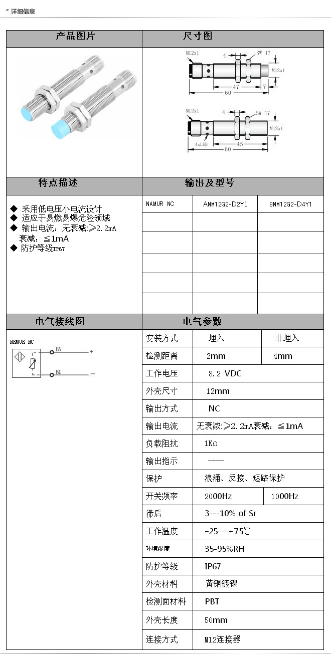 ANM12G2-D2Y1,BNM12G2-D4Y1,接插式M12本安接近開關(guān)