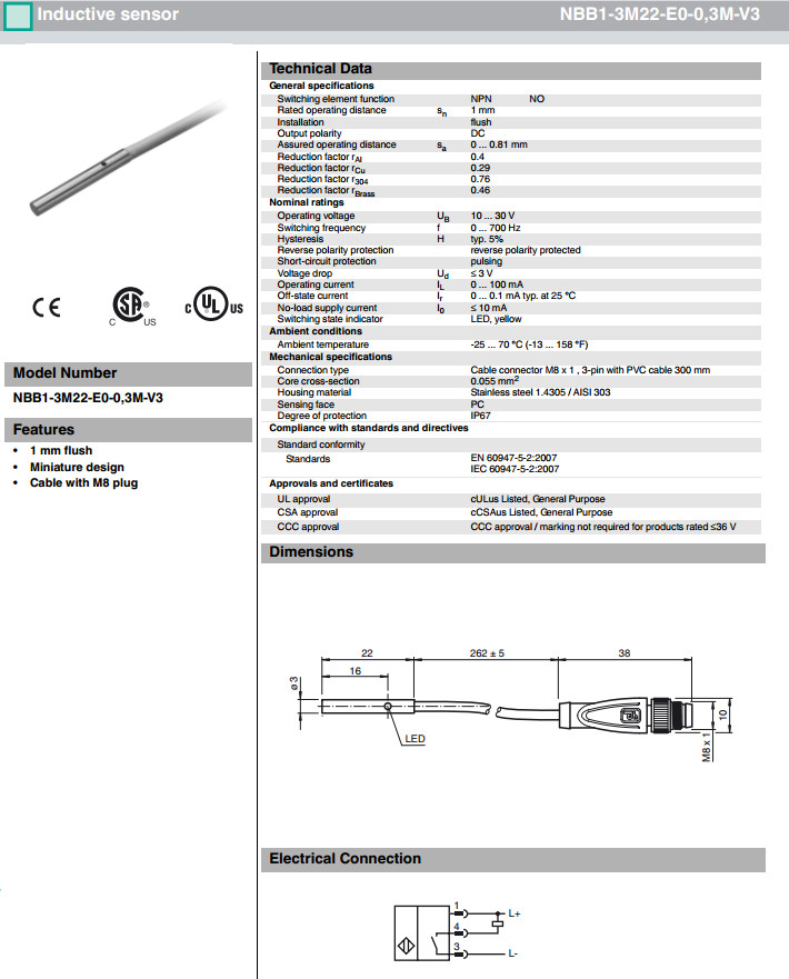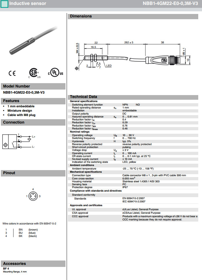 型號: NBB1-3M22-E0-0,3M-V3,NBB1-3M22-E2-0,3M-V3,NBB1-4GM22-E0-0,3M-V3