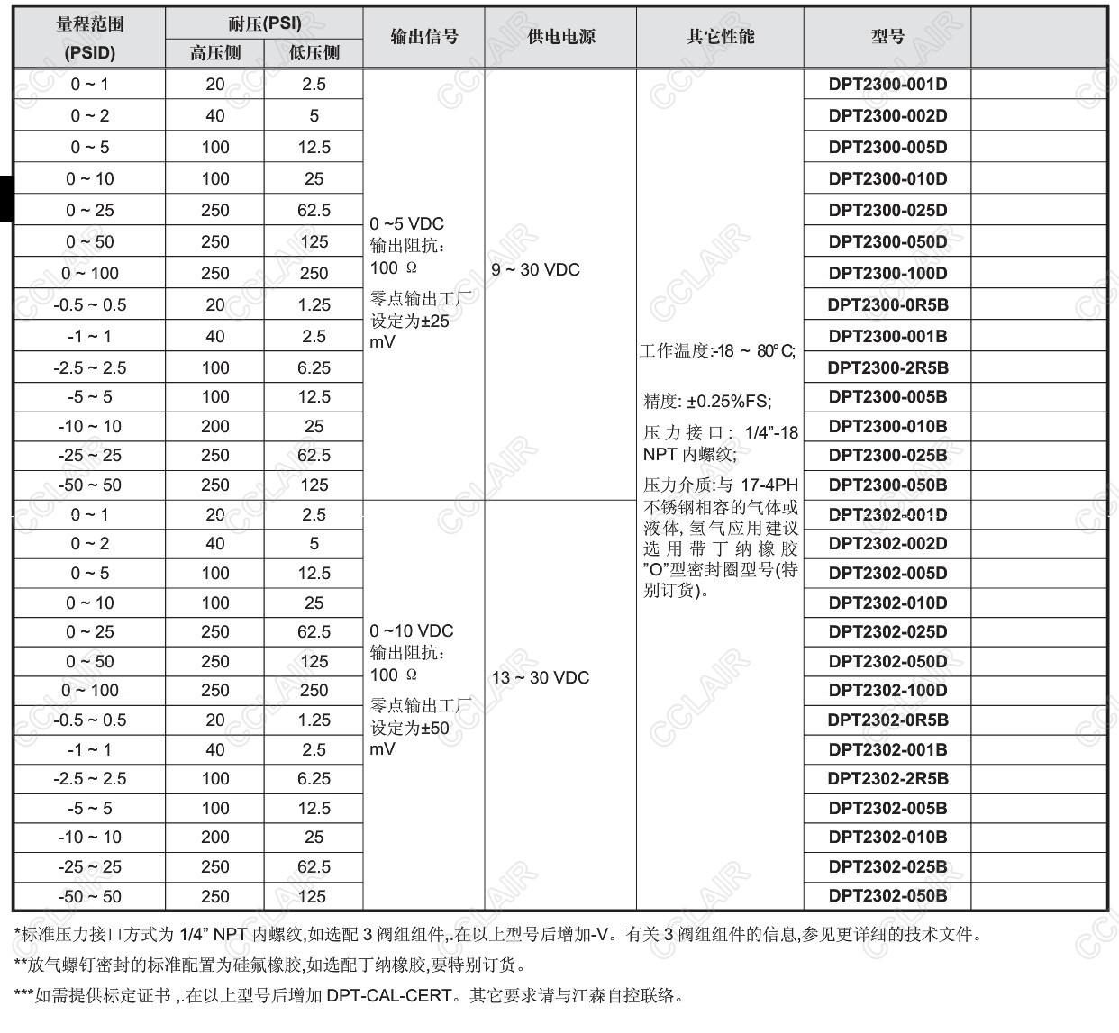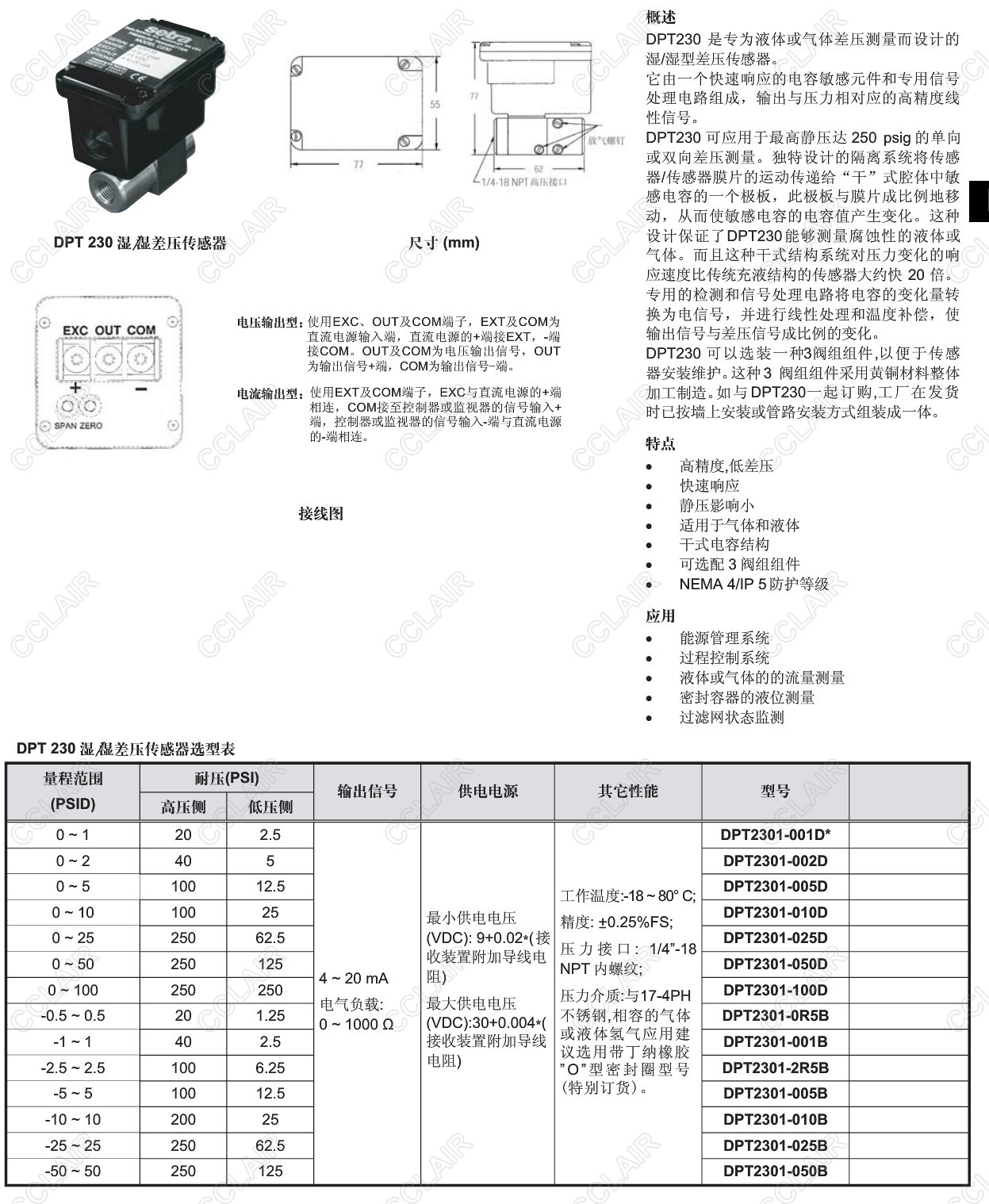 詳細信息 DPT2301-001D,DPT2301-002D,DPT2301-005D,DPT2301-010D,DPT230,液體或氣體濕型差壓傳感器