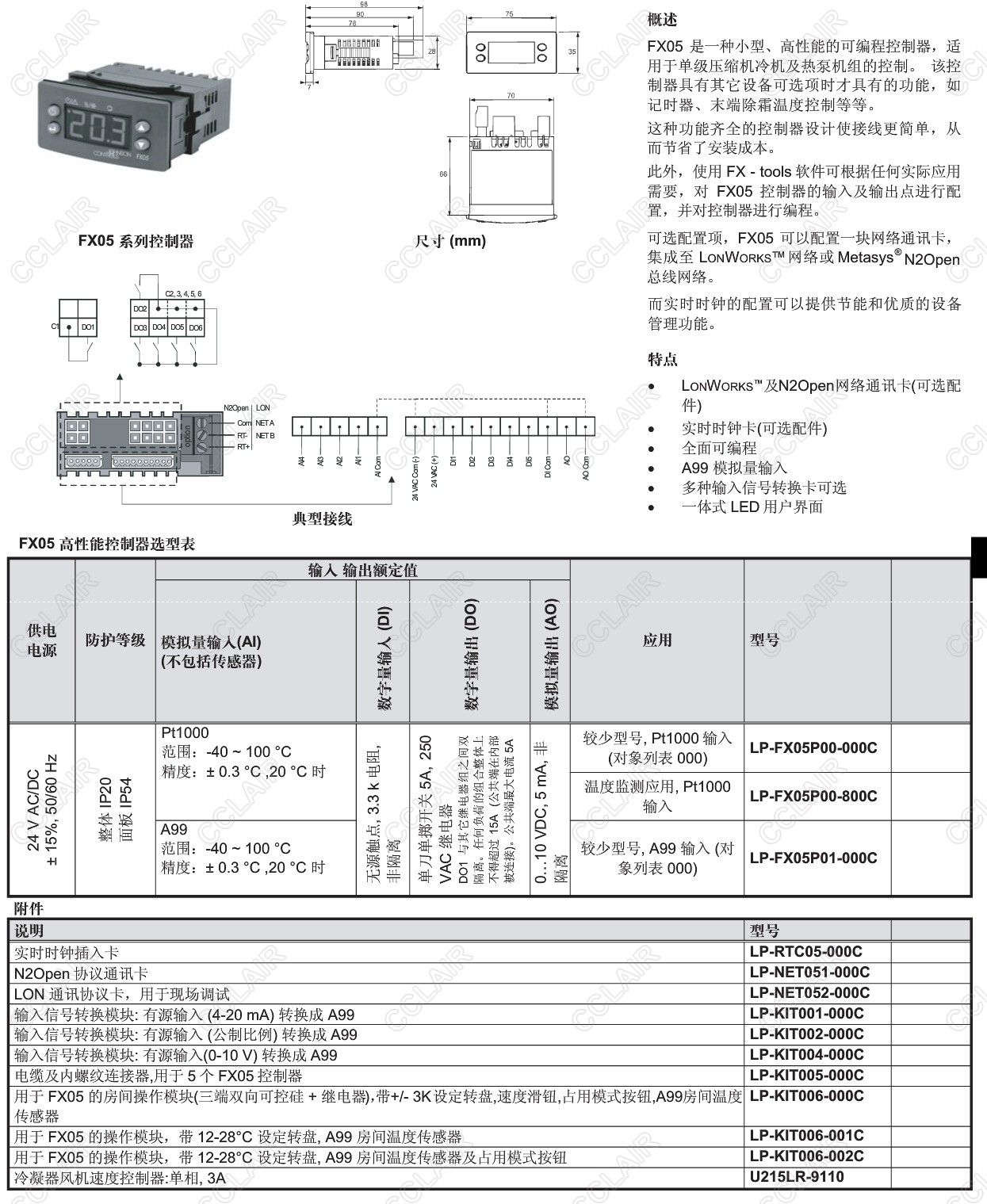 LP-FX05P00-000C,LP-FX05P00-800C,LP-FX05P01-000C,FX05,小型可編程控制器,適用于冷凍及HVAC應用