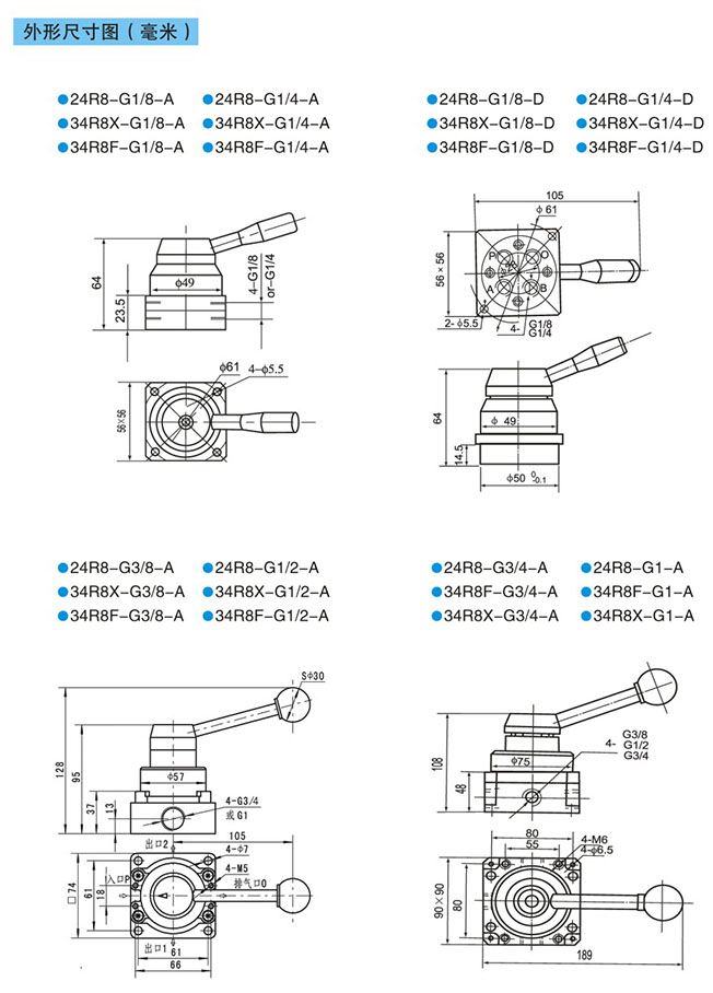詳細(xì)信息 34R8F-G1/8,34R8F-G1/4,34R8F-G3/8,34R8F-G1/2,34R8F-G3/4,34R8F-G1,34R8F-G1/8-A,4通手動(dòng)換向閥