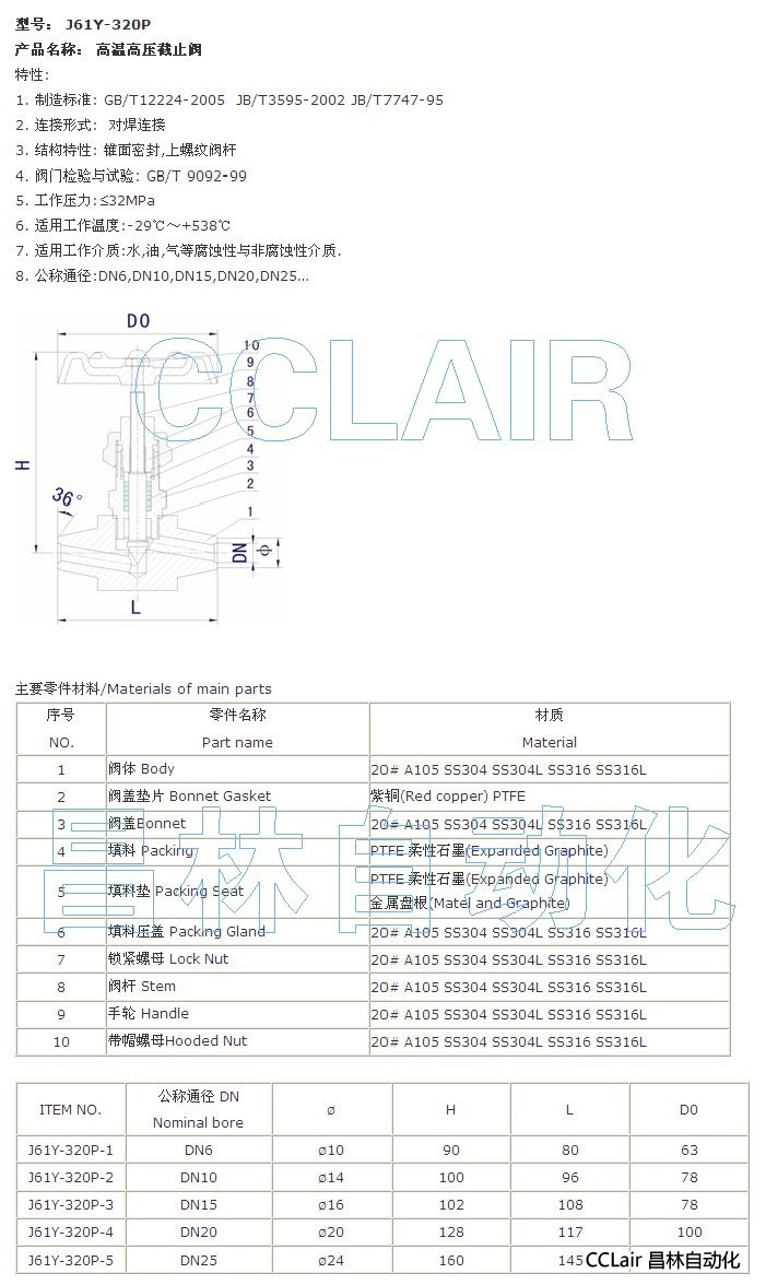 詳細(xì)信息 J61Y-320P-1,J61Y-320P-2,J61Y-320P-3,高溫高壓截止閥