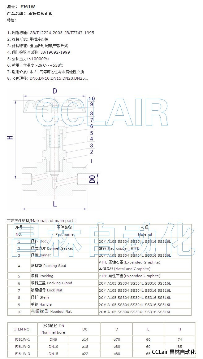 » FJ61W-1,FJ61W-2,FJ61W-3,承插焊截止閥