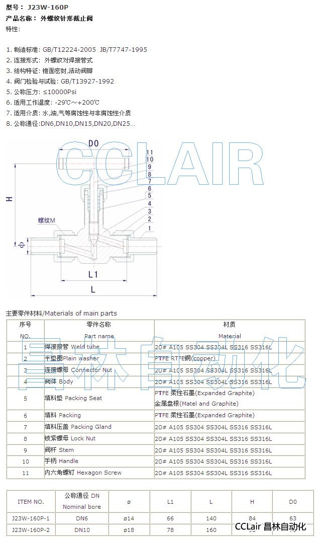 J23W-160P-1,J23W-160P-2,外螺紋針形截止閥