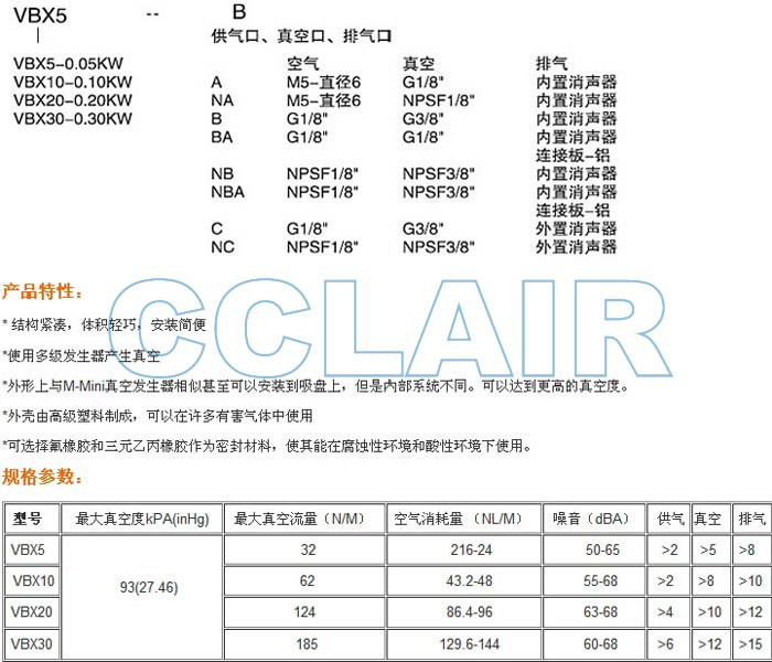 VBX5-A,VBX5-NA,VBX5-B,VBX5-BA,VBX5-NB,VBX5-NBA,VBX5-C,VBX5-NC,真空泵