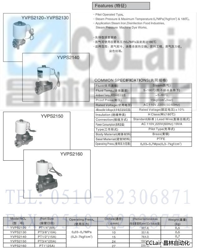 YVPS2120,YVPS2130,YVPS2140,YVPS2150,YVPS2160,2通先導(dǎo)型電磁閥