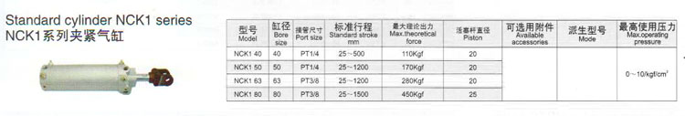 詳細信息 NCK140,NCK150,NCK163,NCK180,夾緊氣缸