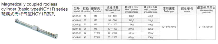 NCY1R-10,NCY1R-15,NCY1R-20,NCY1R-25,NCY1R-32,NCY1R-40,磁藕式無桿氣缸