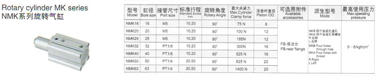 NMK16,NMK20,NMK25,NMK32,NMK40,NMK50,NMK63,旋轉氣缸