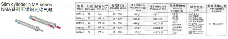 詳細(xì)信息 NMA16,NMA20,NMA25,NMA32,NMA40,不銹鋼迷你氣缸