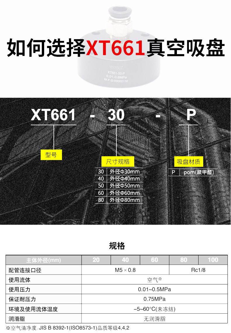 XT661-30-P,XT661-40-P,XT661-50-P,XT661-60-P,XT661-80-P真空吸盤 詳細(xì)信息