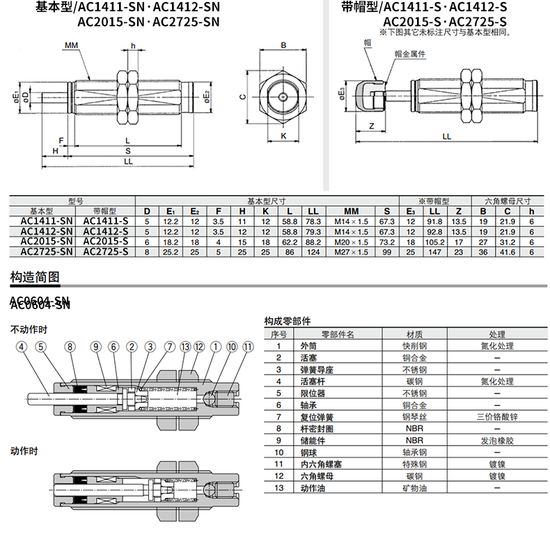 AC0604-SN,AC0806-SN,AC1007-SN,AC1210-SN,AC1412-SN,AC2015-SN,AC2725-SN,AC0604-S,AC0806-S,AC1007-S,AC1210-S,AC1412-S,AC2015-S,AC2725-S,AC1412-SM,AC1412-SC,ASE0806,ASE1007,ASE1210,ASE1412緩沖器