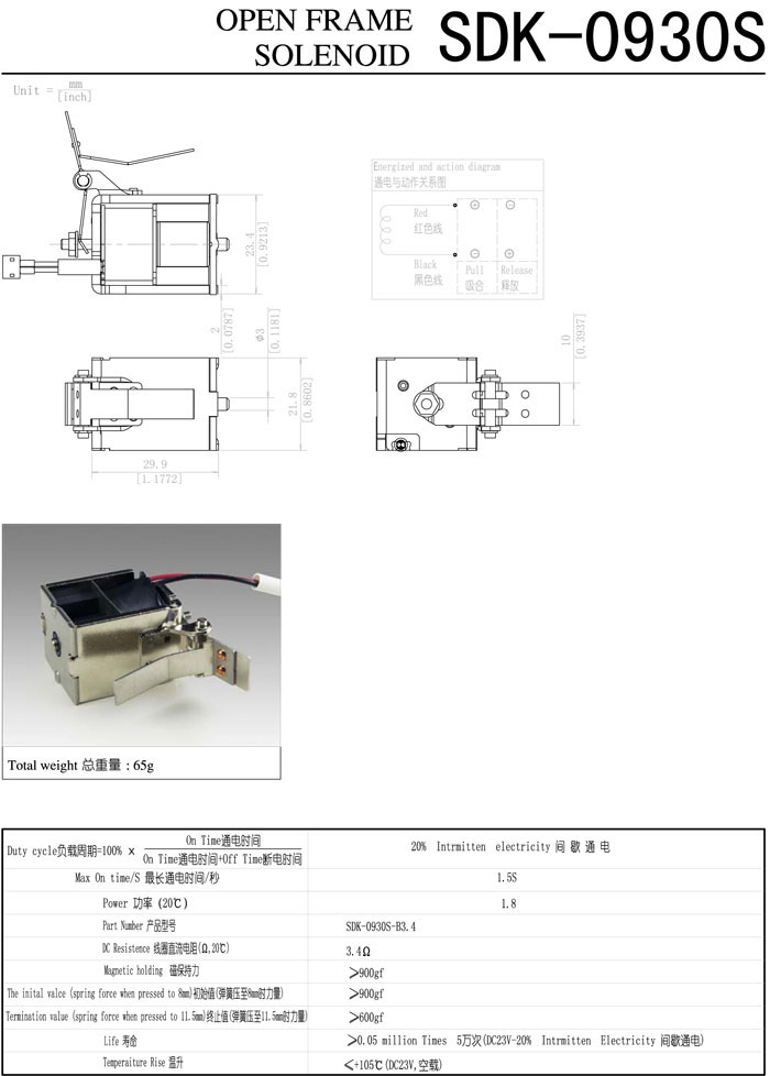 詳細(xì)信息 SDK-0930S-B3.4,直動(dòng)電磁鐵