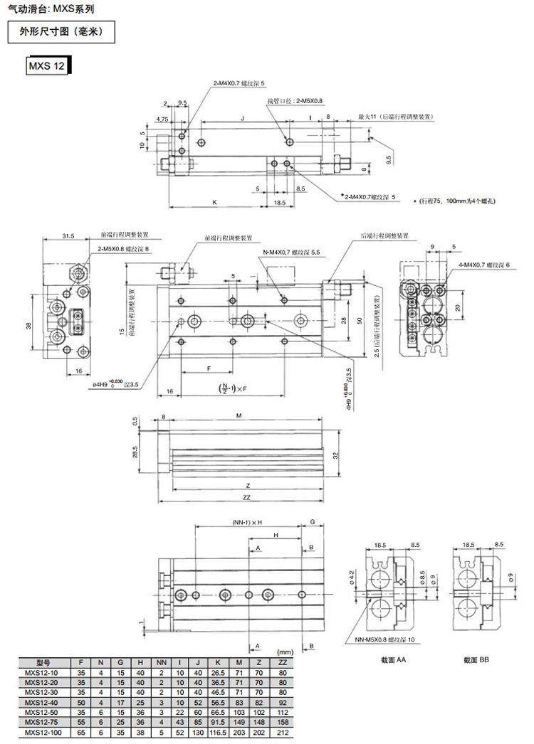 MXS6-10,MXS8-10,MXS12-10,MXS16-10,MXS20-10,MXS25-10,MXS6-20,MXS8-20,MXS12-20,SMC氣動滑臺氣缸