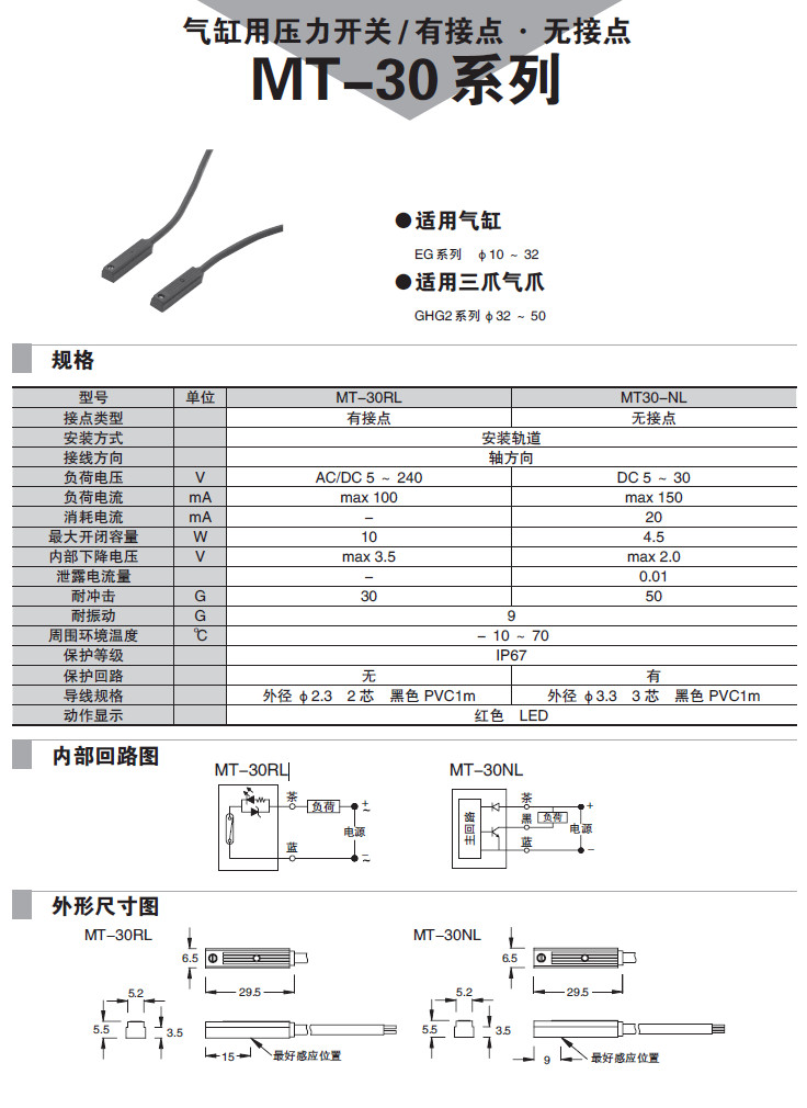 MT-30RL,MT30-NL,氣缸用壓力開關(guān)