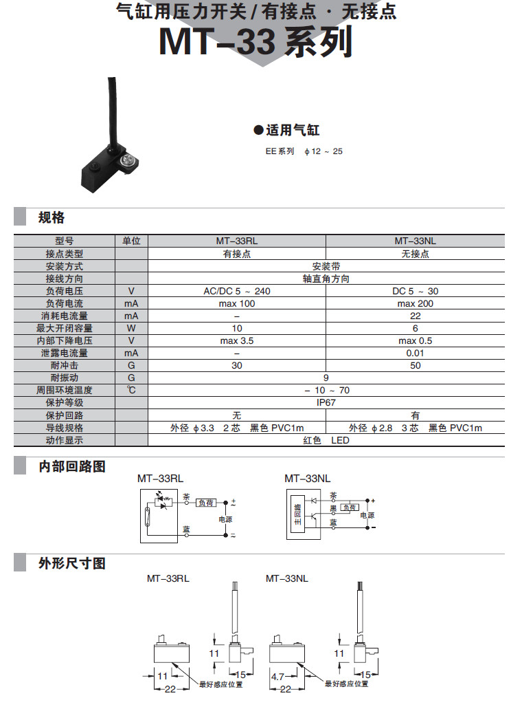 MT-33RL,MT-33NL,氣缸用壓力開關(guān)