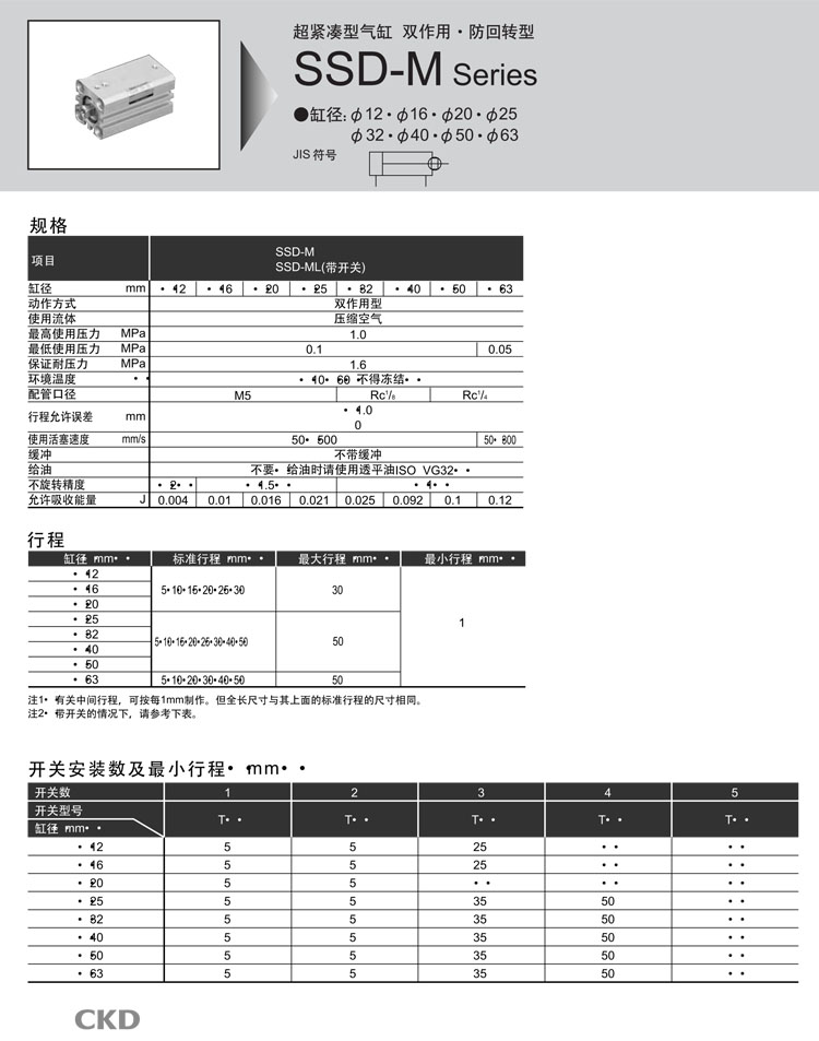 SSD-M-12-5,SSD-ML-12-5,SSD-ML1-12-5,SSD-ML-63-50,SSD-M-63-50,CKD超緊湊型氣缸
