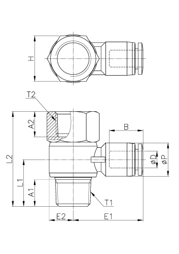 Model ¢D ¢P T1 T2 L1 L2 E1 E2 A1 A2 B H(Hex) ORIFICE WEIGHT(g) BOX(EA)