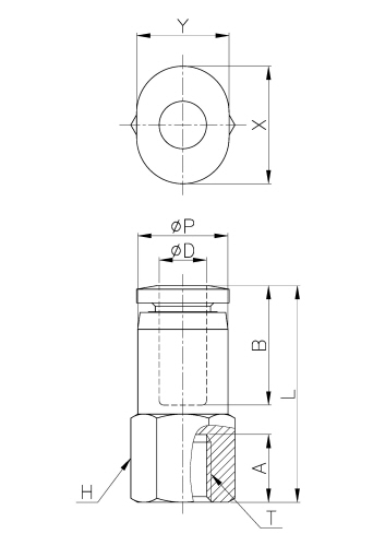 | Model | ¢D | ¢P | T | L | A | B | H(Hex) | X | Y | ORIFICE | WEIGHT(g) | BOX(EA) |