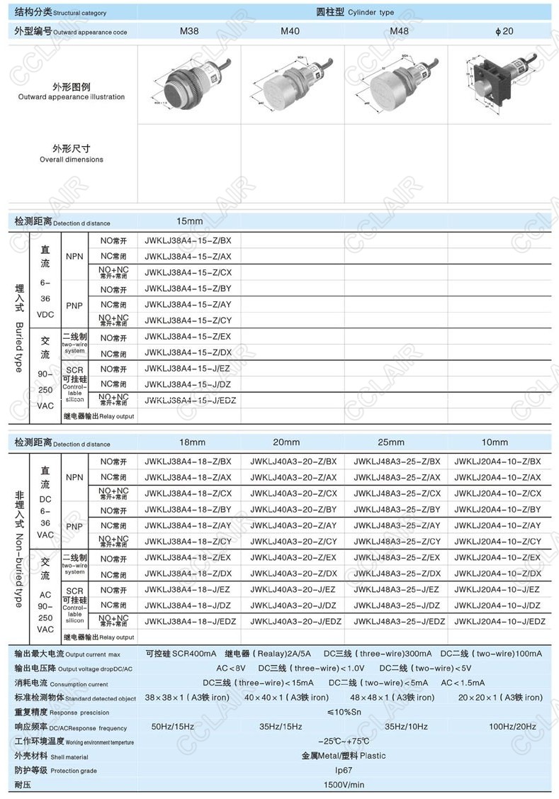 型號: JWKLJ38A4-15-Z/BX,​JWKLJ38A4-18-Z/BX,​JWKLJ48A3-25-Z/BX,JWKLJ20A4-10-J/EDZ,接近開關(guān)