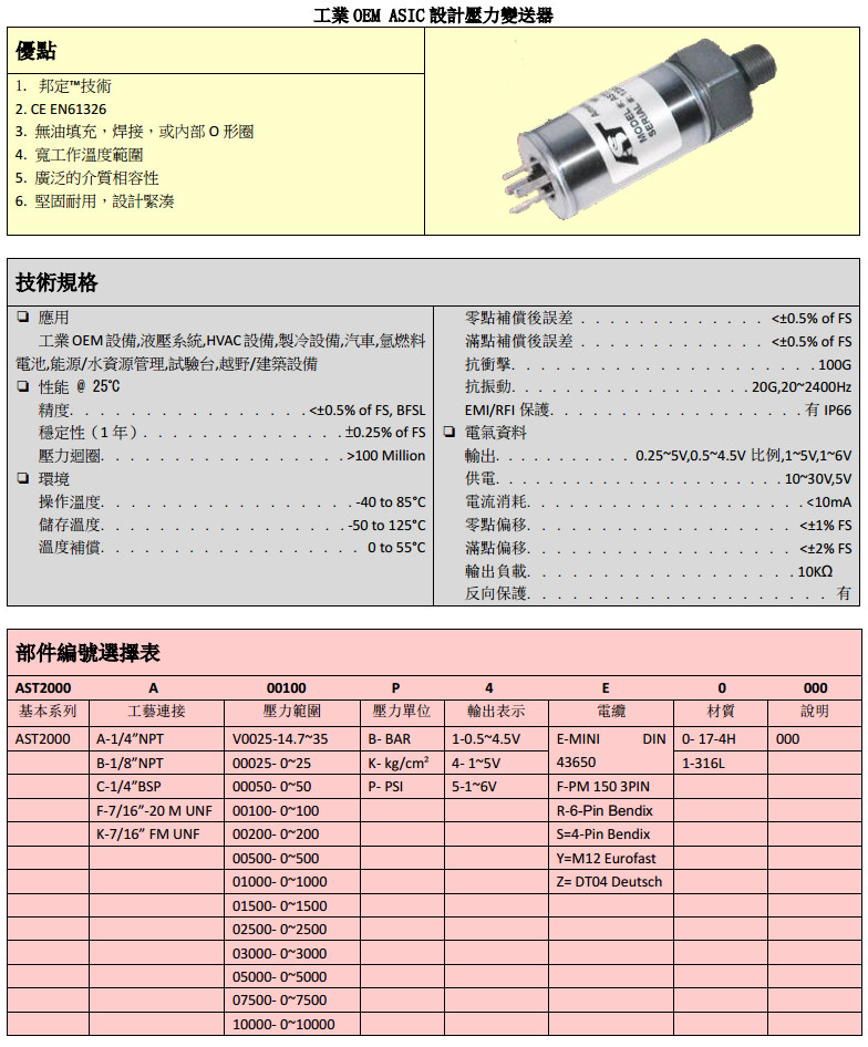 AST2000-A-V0025,AST2000-B-03000,AST2000-C-00150,AST2000-F-10000,壓力變送器