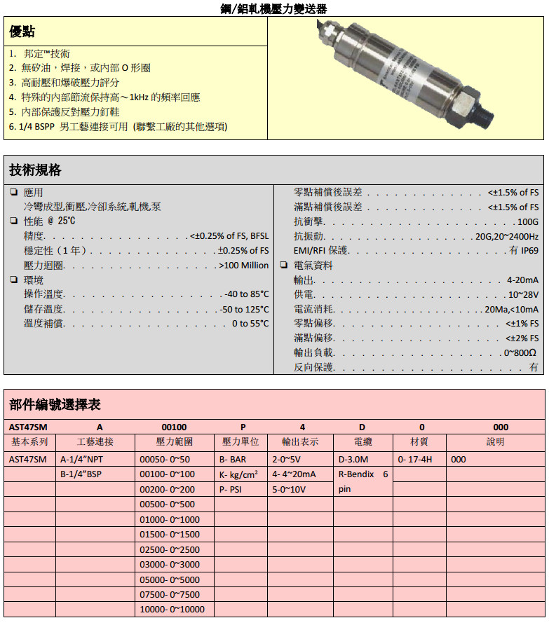 AST47SM-A-00050-B,AST47SM-B-00100-B,AST47SM-A-02500-B,壓力變送器 |