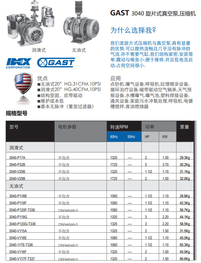 3040-P17A,3040-P32B,3040-V20B,3040-V29B,3040-P118B,旋片式真空泵/壓縮機(jī)