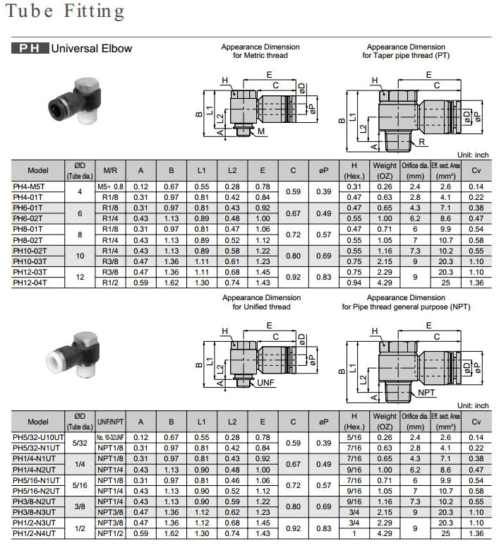PH4-M5T,PH6-01T,PH8-01T,PH10-02T,PH12-03T,PH5/32-U10UT,PH1/4-N1UT,PH5/16-N1UT,PH3/8-N2UT,PISCO快速接頭
