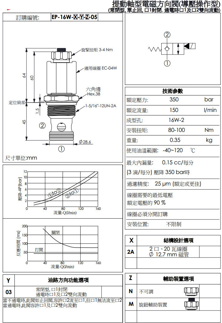 EP-16W-2A-03-N-05,EP-16W-2A-03-M-05,winner提動軸型電磁方向閥