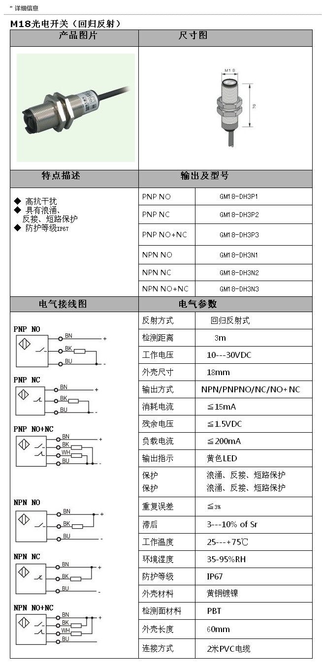 GM18-DH3P1,GM18-DH3P2,GM18-DH3P3,GM18-DH3N1,GM18-DH3N2,GM18-DH3N3,M18光電(回歸反射)